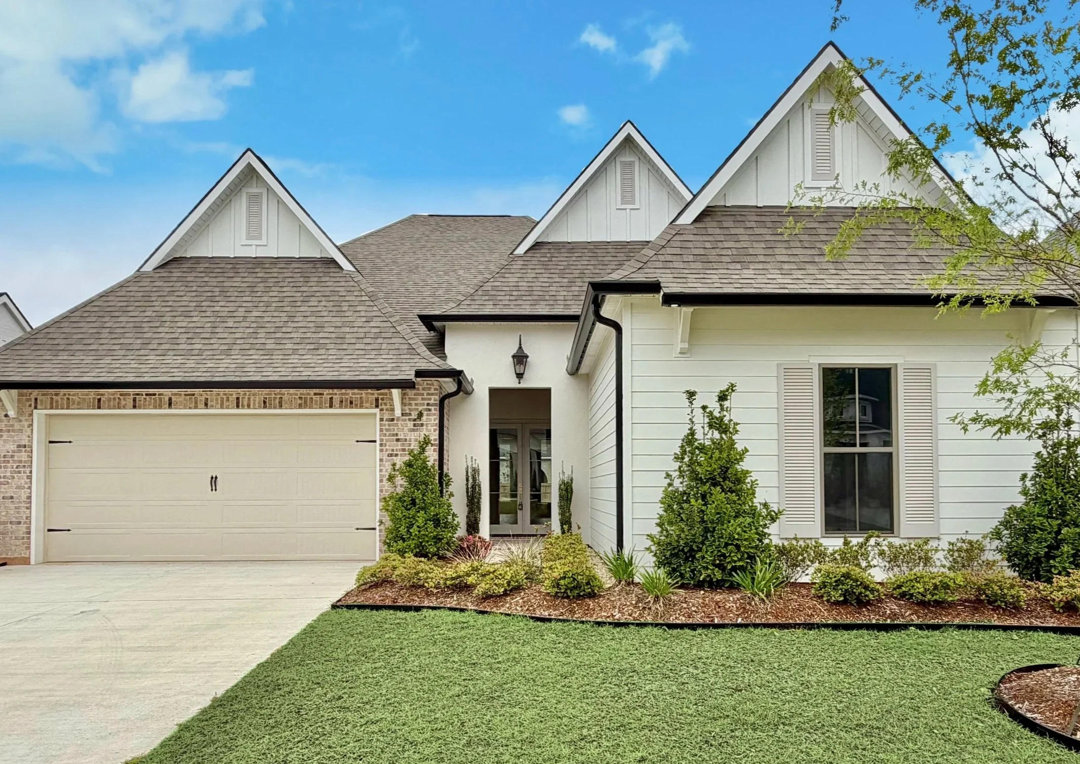 Welcome to this Parade of Homes–featured residence, open April 11-12 and April 18-19! Stop in and see for yourself! Step into the grand foyer, where bold design elements set the tone with a striking checkerboard tile entry and elegant custom wall molding. White oak tile flooring flows seamlessly throughout, creating a warm and sophisticated backdrop. The living room is bathed in natural light, showcasing a wall of windows overlooking the backyard and anchored by a beautiful brick fireplace with custom built-ins—perfect for both relaxing and entertaining. The chef’s kitchen is truly the heart of the home, featuring a massive island topped with Macaubas Fantasy quartzite, floor-to-ceiling custom cabinetry, stainless steel appliances, a gas range with pot filler, custom hood vent, and a beautifully tiled backsplash. A spacious butler’s pantry provides additional storage and prep space. The primary suite is a private retreat, highlighted by an impressive 11-foot cypress ceiling. The spa-inspired bath includes a soaking tub, glass-enclosed shower, elegant wainscoting, and a custom walk-in closet designed for both style and function. Across the thoughtfully designed split floor plan, you’ll find three additional bedrooms, each offering 10-foot ceilings, white oak tile flooring, and custom closets. Every detail is thoughtfully designed to impress. Outdoor living is equally inviting with a covered patio featuring a cypress ceiling—ideal for year-round enjoyment. The builder has further enhanced the home’s curb appeal with a bricked front porch, fenced backyard, gas lantern, gutters, and professional landscaping. Located in The Estates at Watercross, a premier gated community, residents enjoy walking paths, green spaces, and a private boat launch—offering both luxury and lifestyle, all within minutes to shopping, dining and I-12, and a quick hop up to delightful Old Covington!